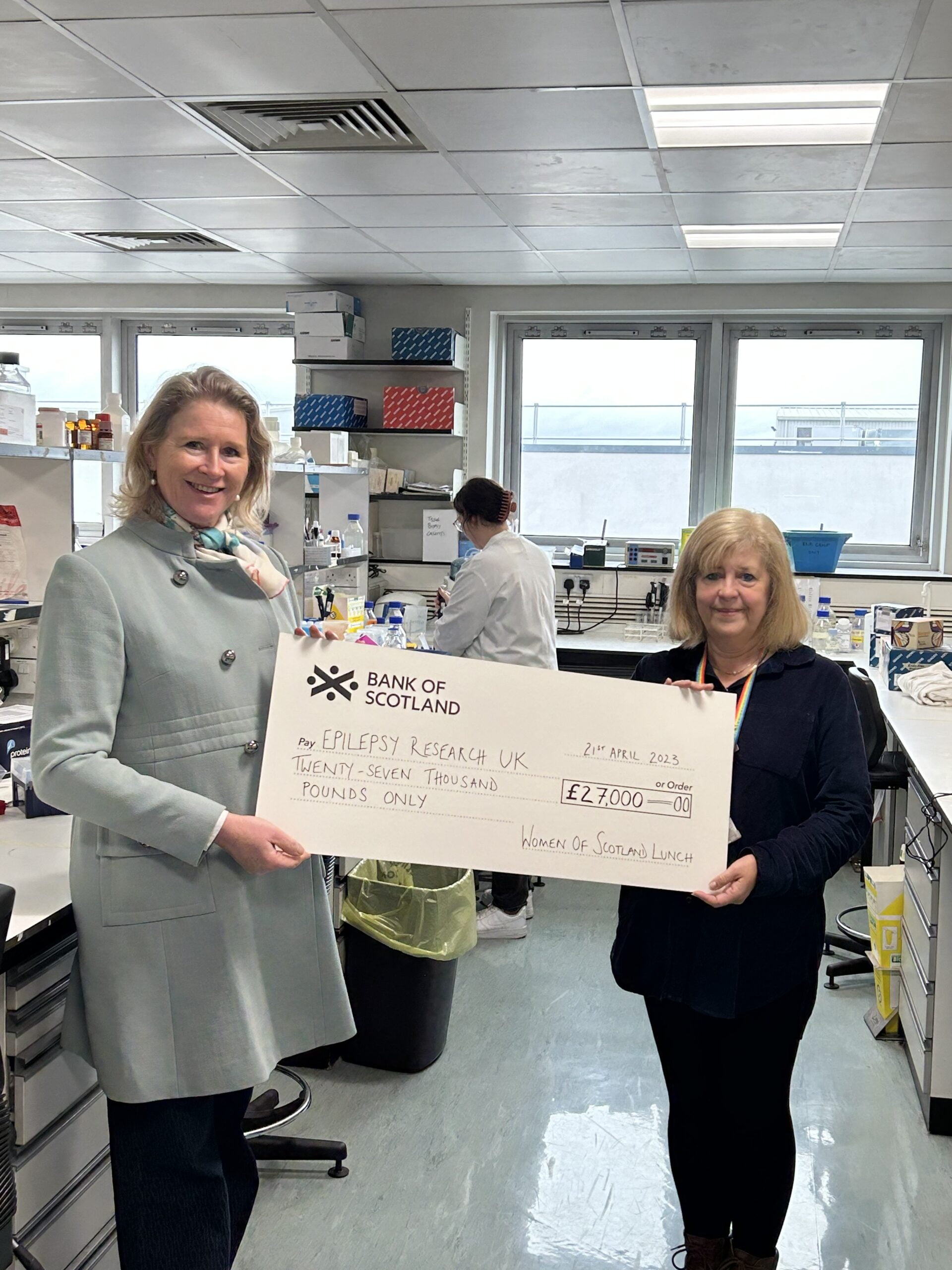 Our Chair Katie Stewart handed over a cheque for £27,000 raised at our lunch in April to Catherine Abbott of Epilepsy Research UK at their